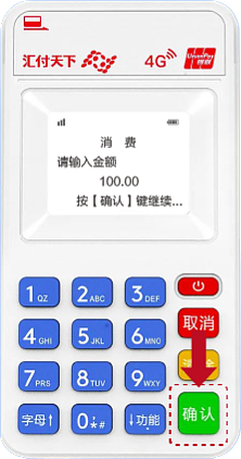 4. 完成交易并激活机器:用认证的信用卡插卡、挥卡或刷卡完成交易后,机器将自动激活。